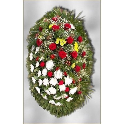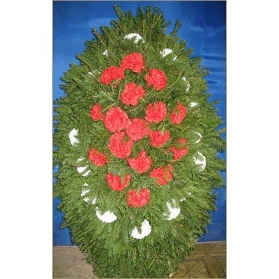 Есть венки из хвои, венки с искусственными цветами, можно заказать венок из живых цветов.
